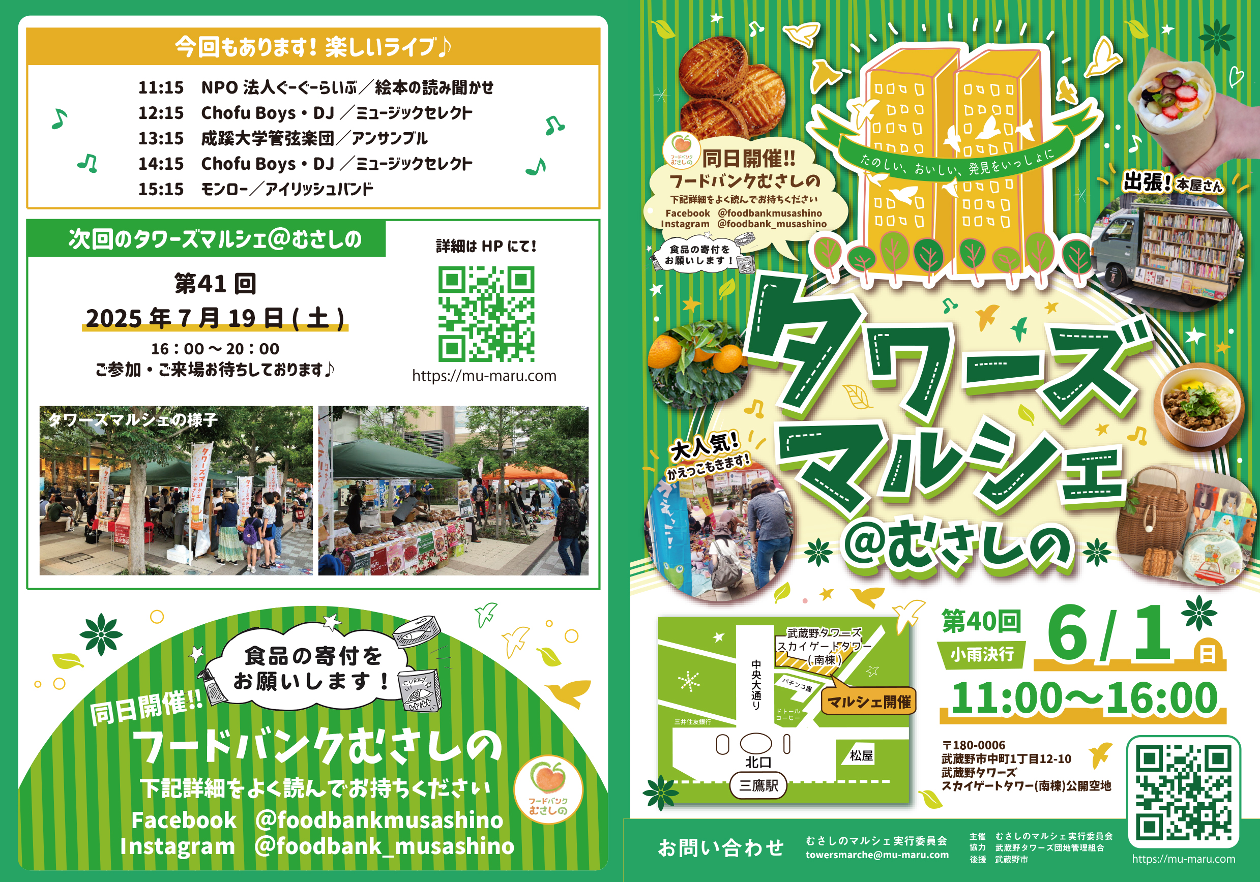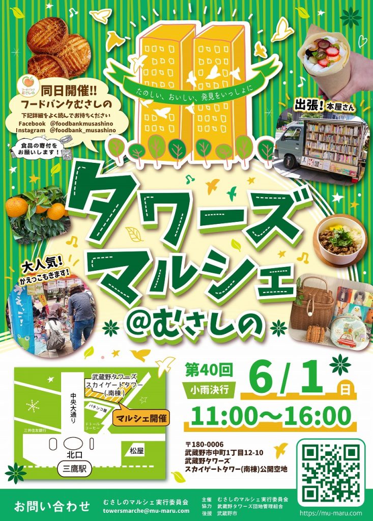 HātWorkが実行委員としてかかわっている三鷹駅北口のタワーズマルシェ。第1回から出店して今回でなんと40回目となります。前回は雨で中止となってしまいましたが、今回は梅雨前ということで何とか開催したいと思います。