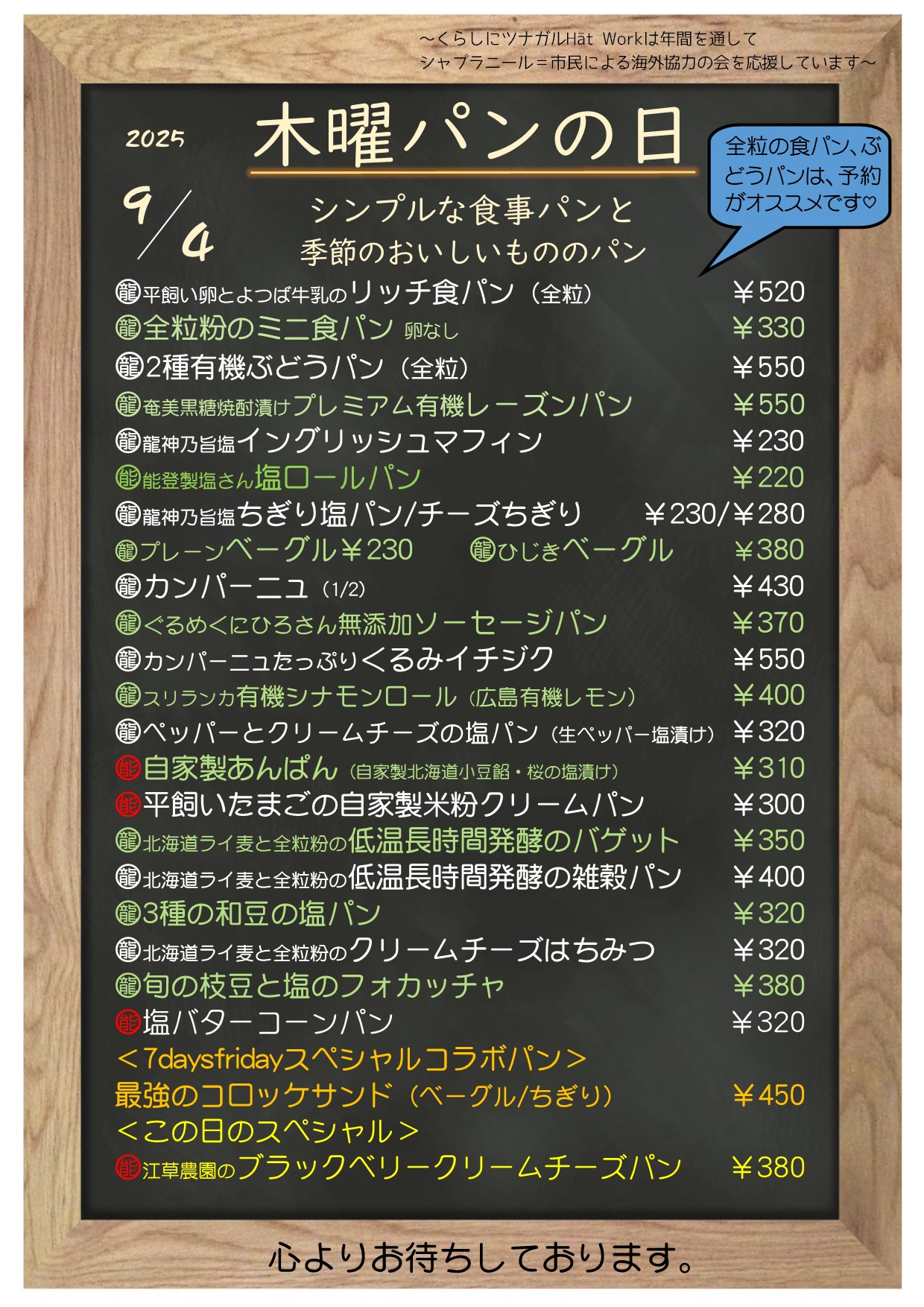 むさしのクラフトパンのさかぐちよしえです。はや9月。今年もあと4か月…。