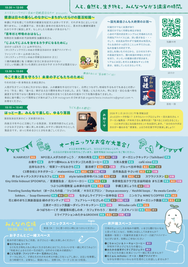 このフェスタは、「消費から循環へ〜子どもたちといっしょに、これからのライフスタイルを体験しよう〜」をコンセプトに「みたか子どもの食と未来を守る会」さんが企画されるものです。昨年はどしゃぶりの中の開催でしたが、ふらっとというよりこのイベントのために来られたお客さまが多かったようでとてもにぎわっていました。