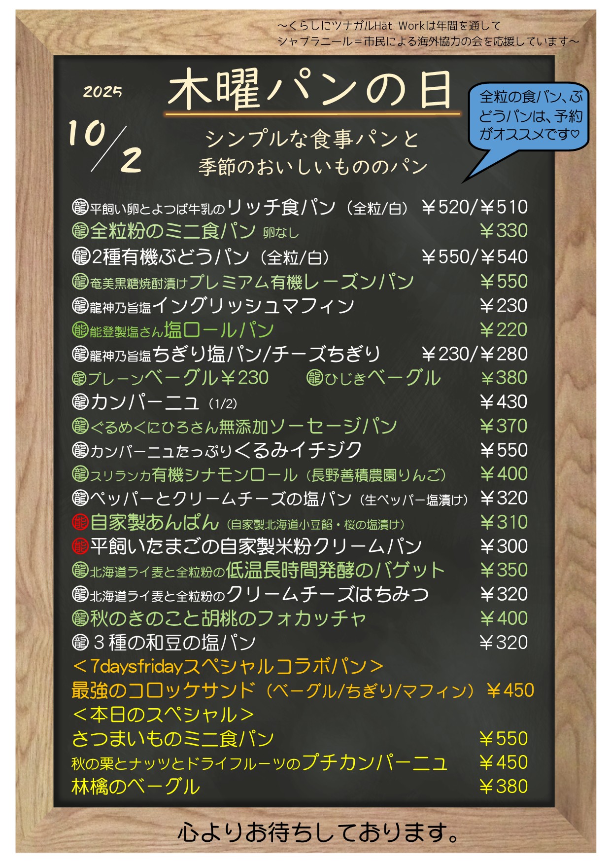 むさしのクラフトパンのさかぐちよしえです。どんどん日が過ぎてゆくので、少々追い着いて行きません。