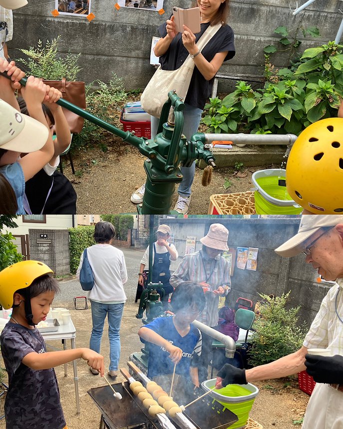 おとなもクンクンとパンの匂いをかぎ、買ってきたパンを焼き、焼いたアジにかぶりつき、その間、誰かが井戸を漕いで打ち水をし、池のカメに餌をやり…にぎやかな一日でした。