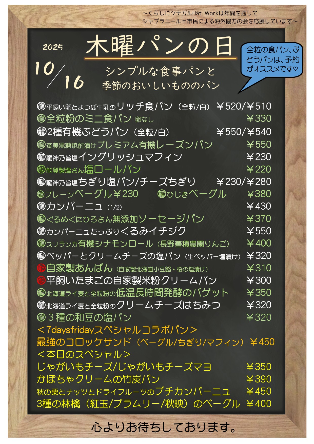 9日(木)は急遽のパンランチにお出かけ、ご利用いただきましてありがとうございました。
