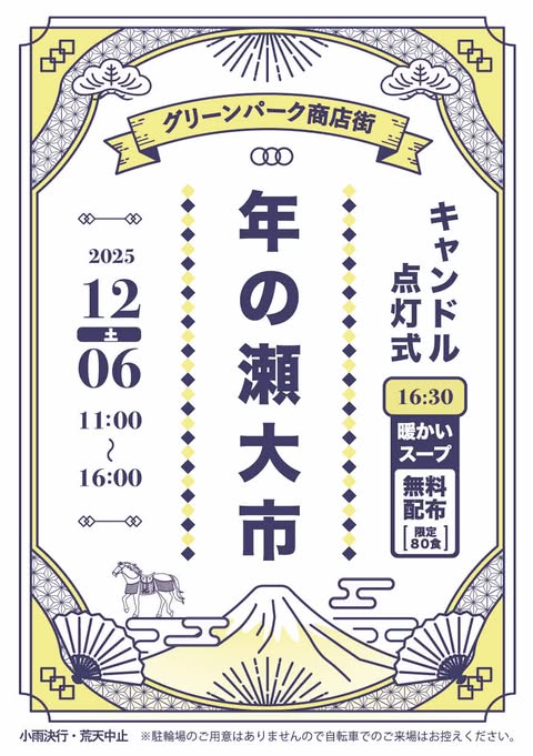 HātWorkが日頃「木曜パンの日」で出店しているグリーンパーク商店街では12月恒例のイベントとして、今年は「年の瀬大市」を開催します。